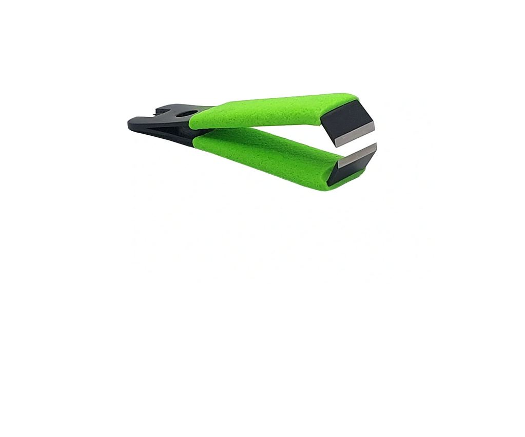 Builtin Sharp Cutting scissor with serration on one blade to hold line leader during cutting.